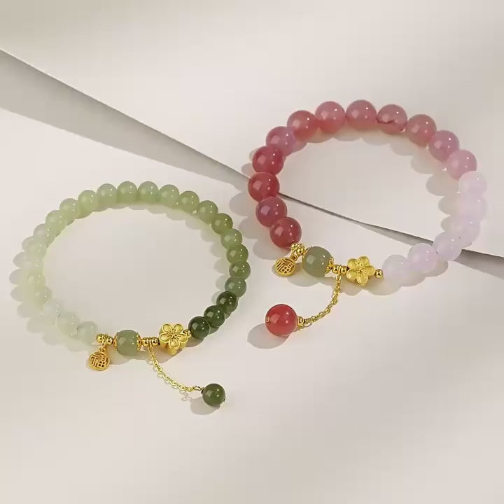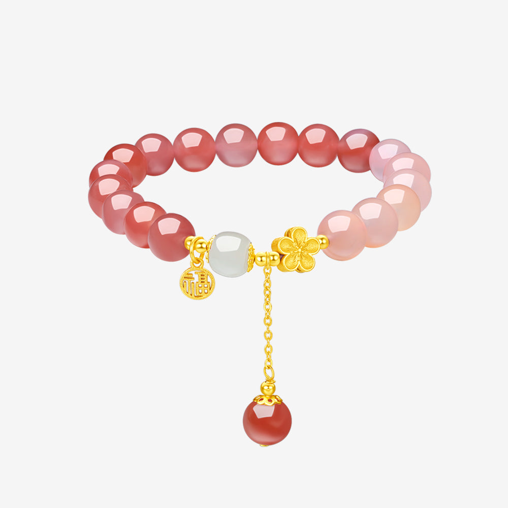 S925 Silver Peach Blossom Flower Pink Agate Beaded Bracelet