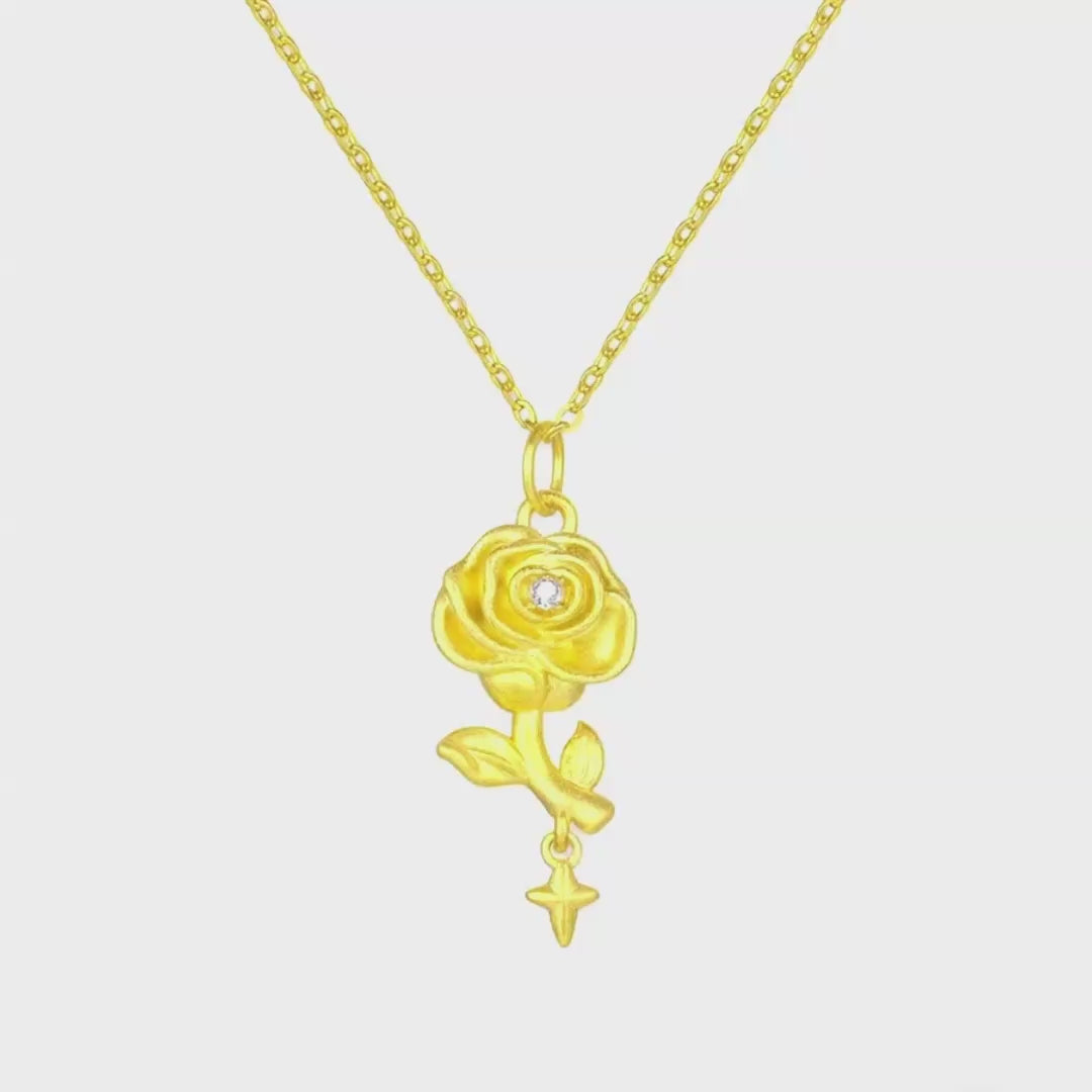 Monet Garden Series 18K Gold Diamond Star Rose Pendant