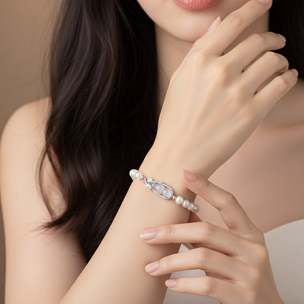 Silver Chalcedony Lucky Bean Calabash Gourd Pearl Beaded Bracelet