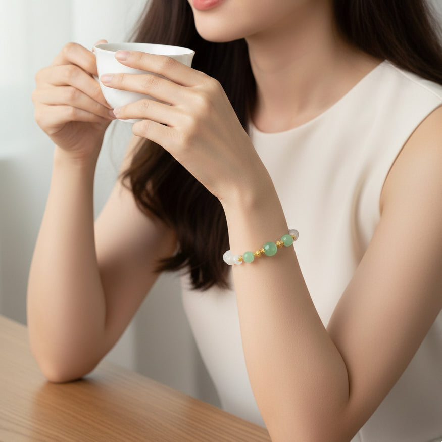 Silver Energy Five Elements Natural Crystal Chalcedony Beaded Bracelet