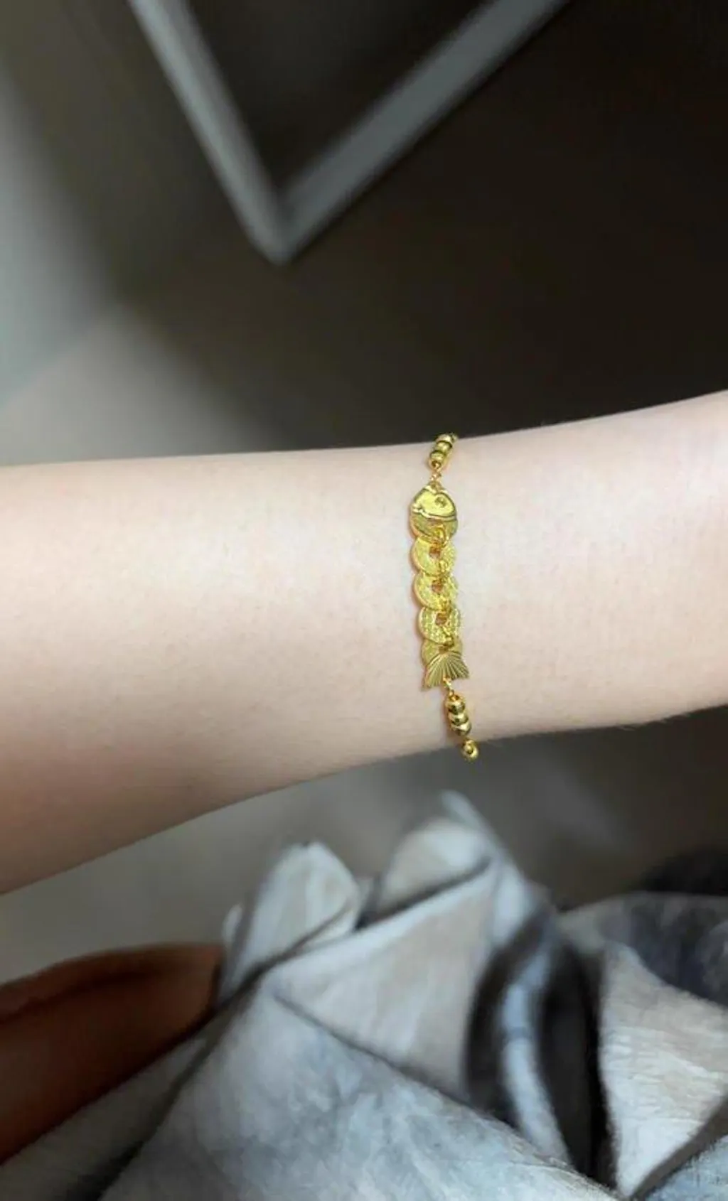 Gold Plated Silver Five Emperors Coins Koi Goldfish Jewelry Set - Bracelet Necklace