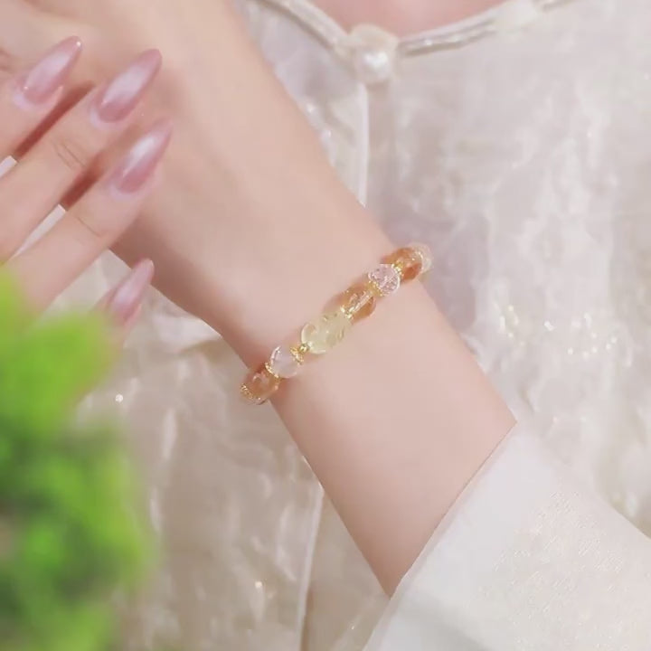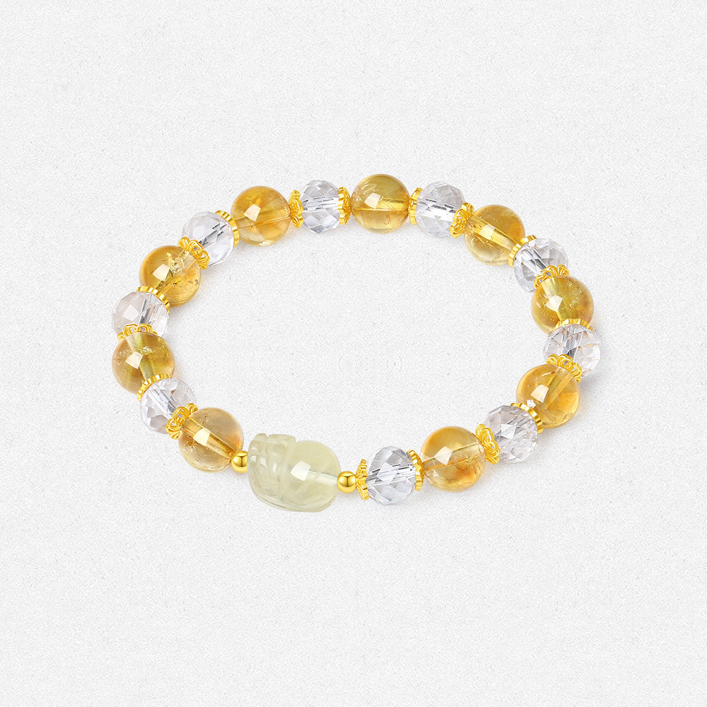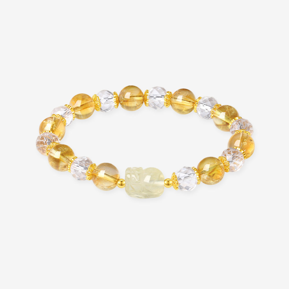 S925 Silver Natural Yellow Citrine Clear Crystal Pixiu Beaded Bracelet