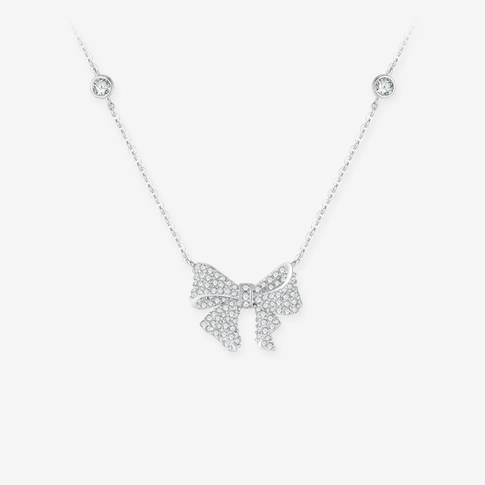 Silver Zircon Bow Knot Necklace