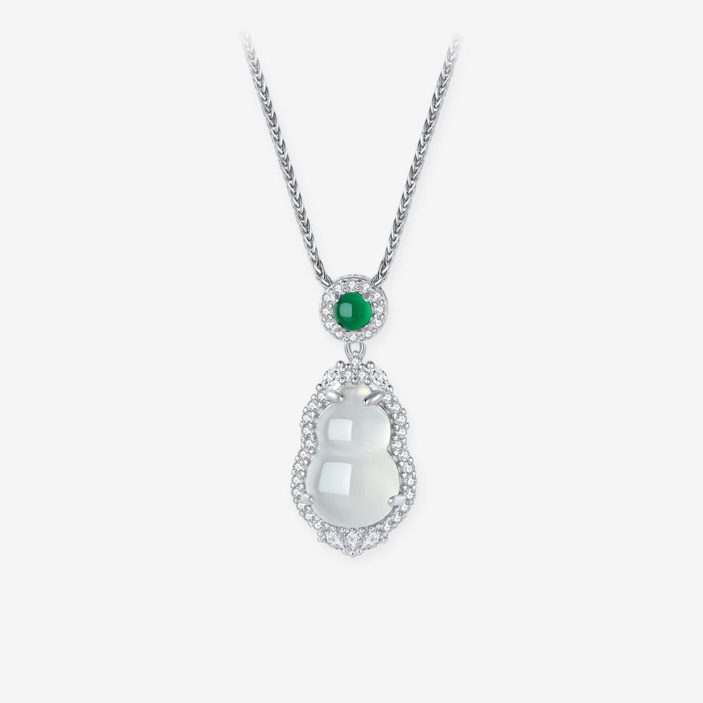 The necklace is designed in a classic gourd shape and inlaid with transparent chalcedony. The gourd is decorated with zircon around it, making it more sparkling and noble. This necklace is very suitable as a gift for mothers and female elders.