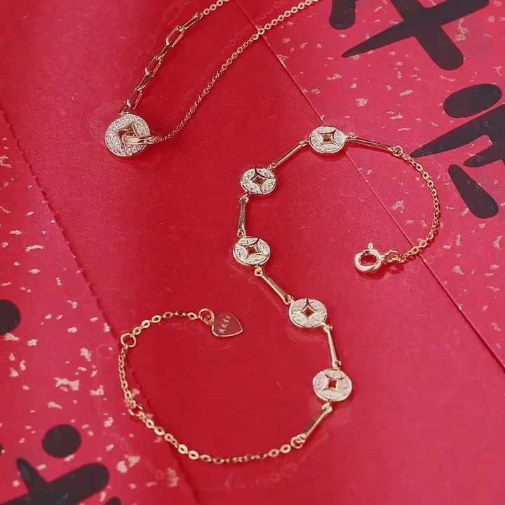 [Pre-sale] Gold Plated Silver Zircon Golden Coin Interlocking Necklace