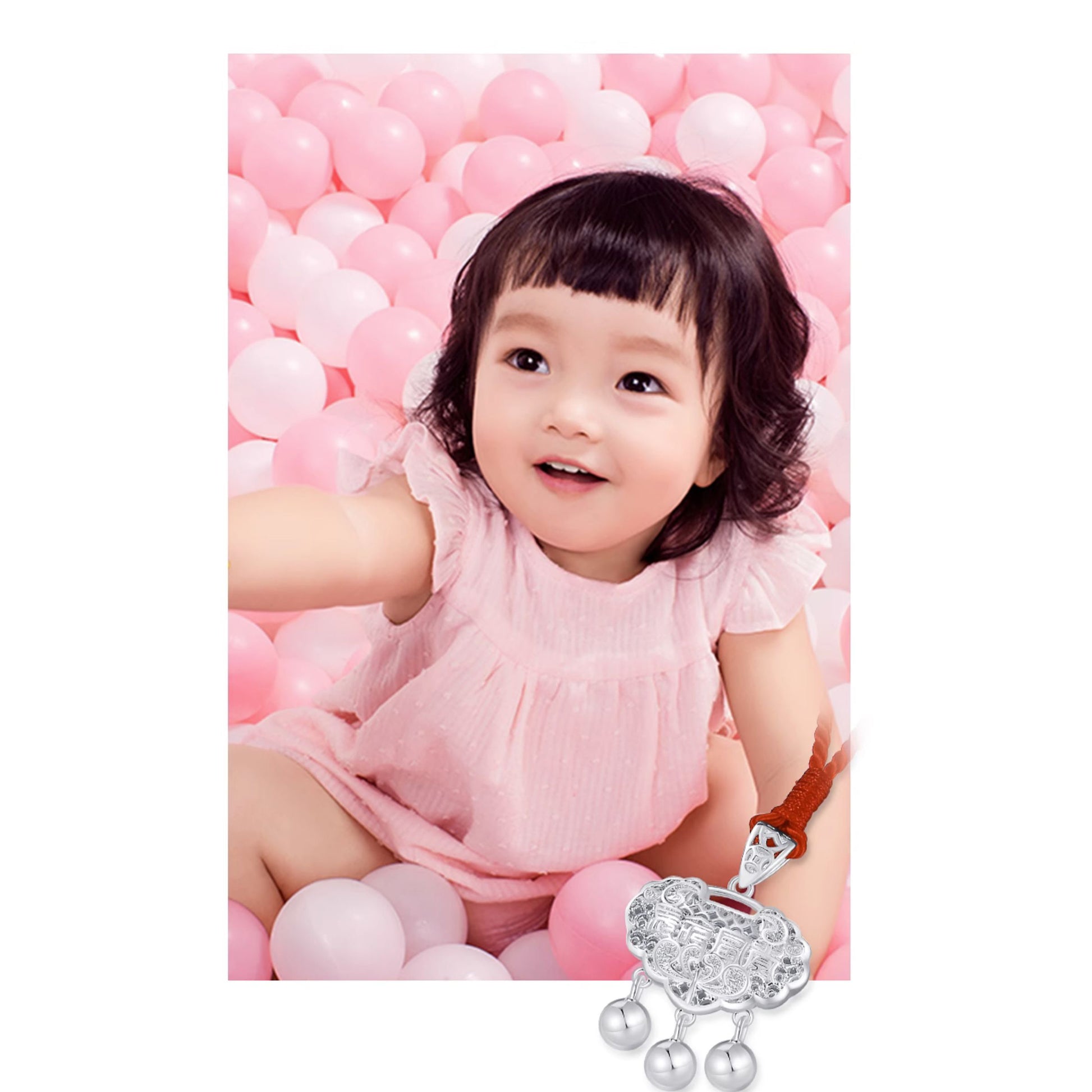 Silver Wealth and Longevity Ruyi Lock Newborn Baby Child Necklace