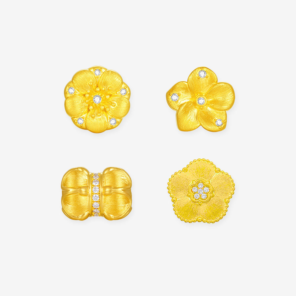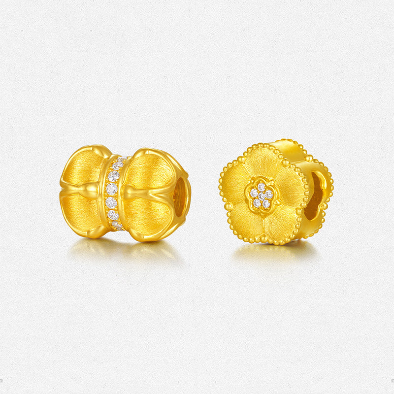 Twelve Gods of Flowers Series 24K Gold Diamond Lucky Flower Charm