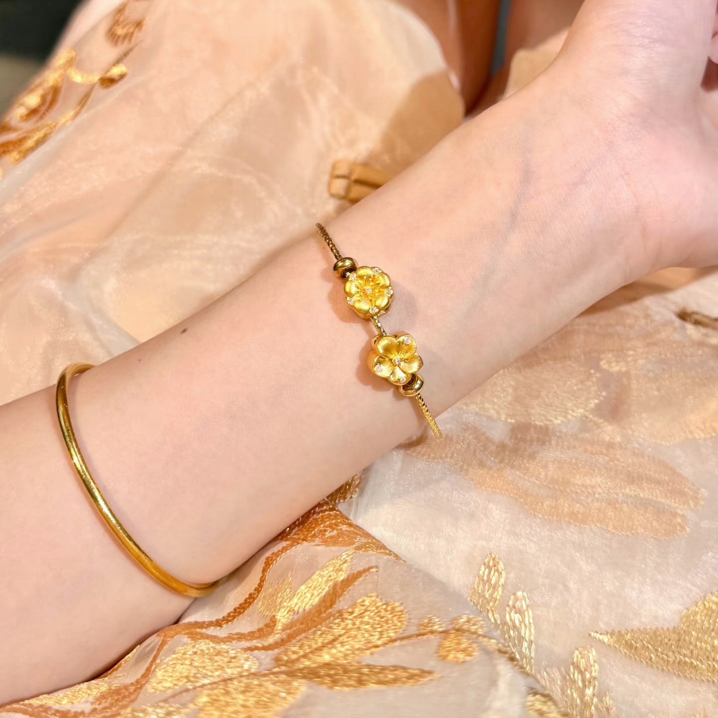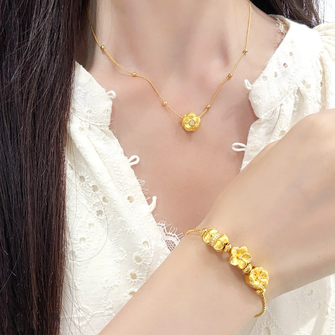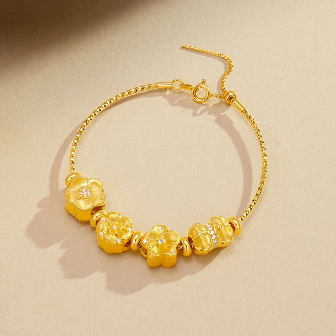 Discover the refined symbolism behind each blossom in our Twelve Gods of Flowers Series 24K Gold Diamond Lucky Flower Charm. The peach blossom represents romance and prosperity, while the almond blossom signifies hope and awakening. The lotus embodies purity and spiritual growth, and the plum blossom reflects resilience and elegance.