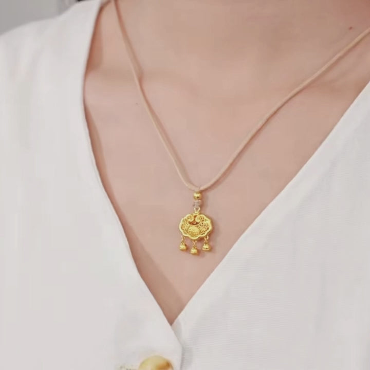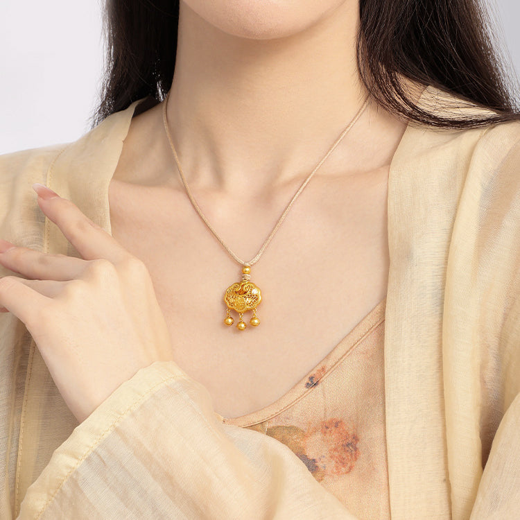 The pendant is designed with the classic lucky lock. God of good fortune arrives, and there will be good news every year. The longevity lock is made using ancient gold craftsmanship and filigree craftsmanship, making it more refined. No matter what occasion you give as a gift, it is full of blessings.