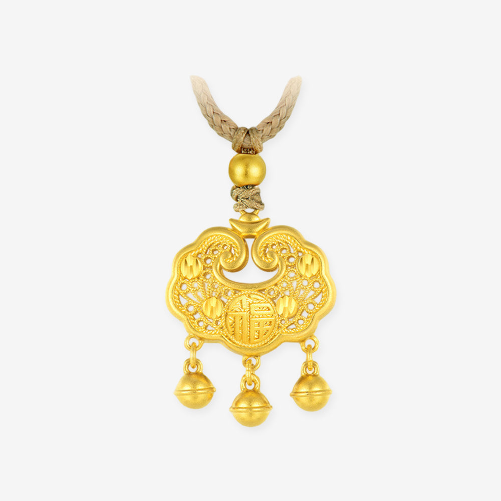 24K Gold Fortune Ruyi Lock and Bells Necklace