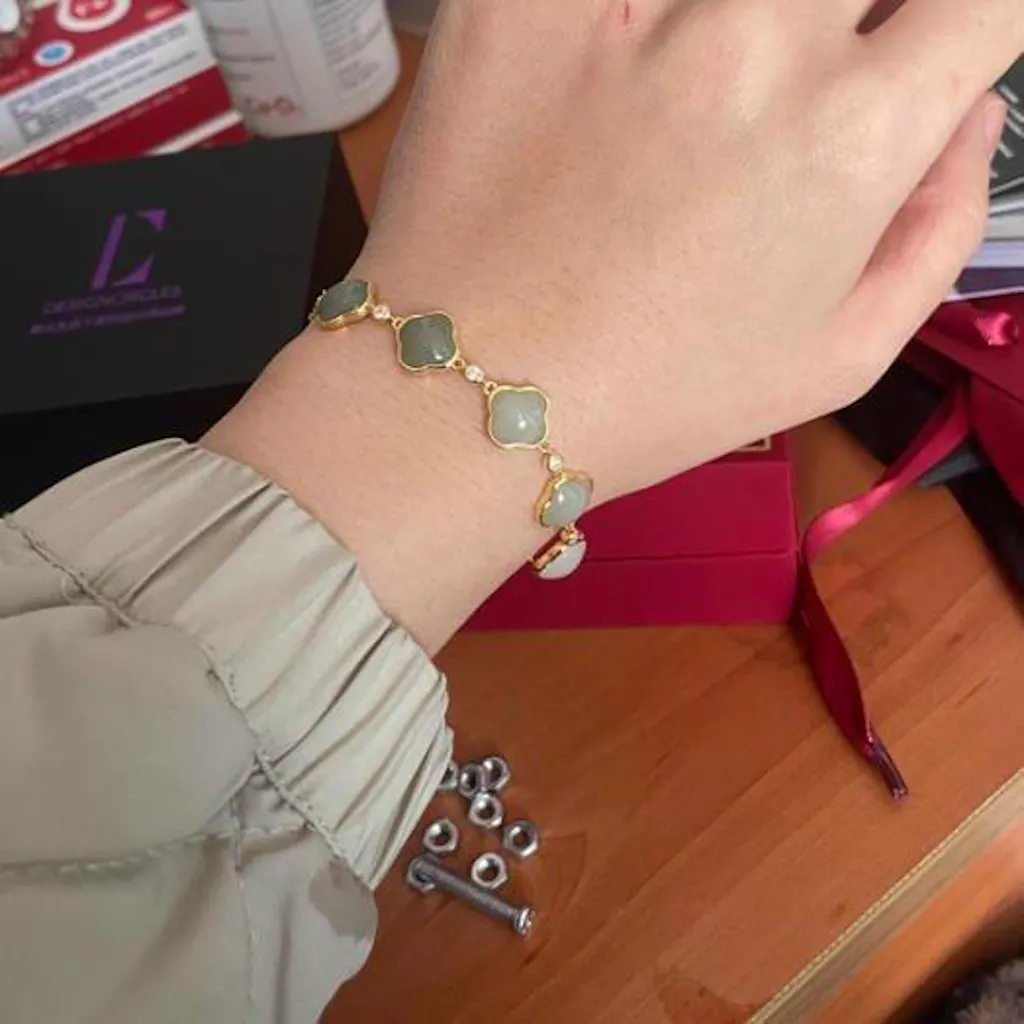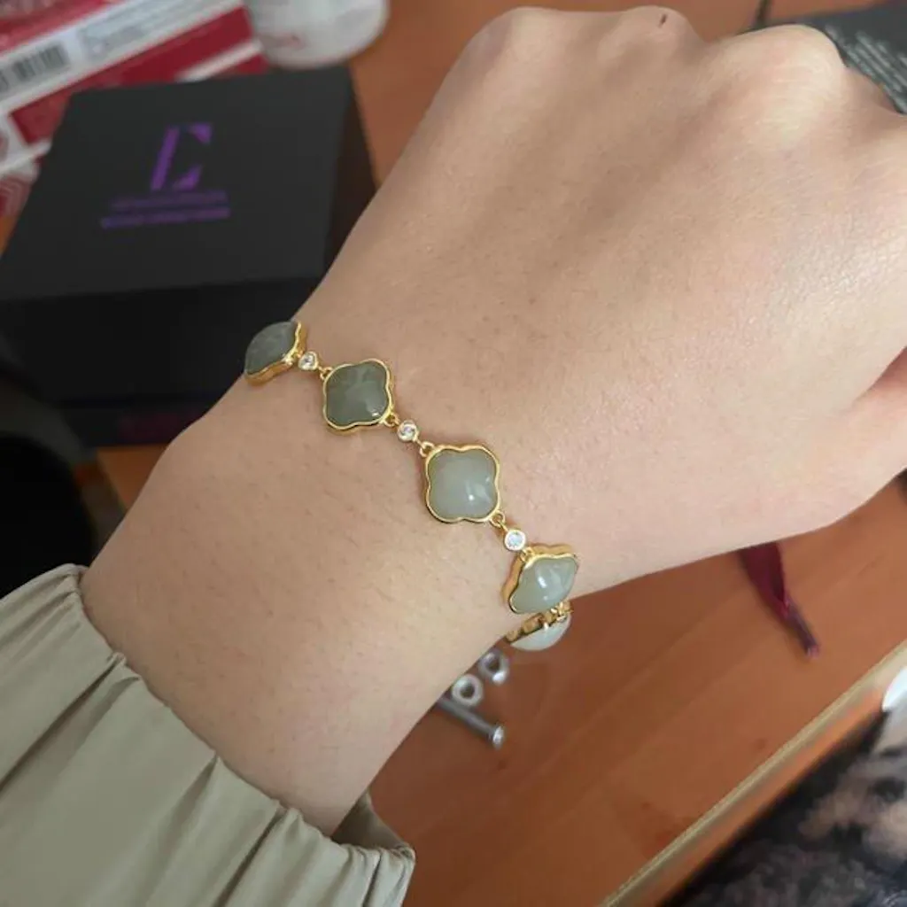 Gold Plated Silver Gradient Color Hetian Jade Clover Bracelet