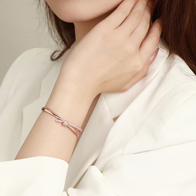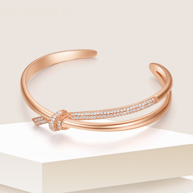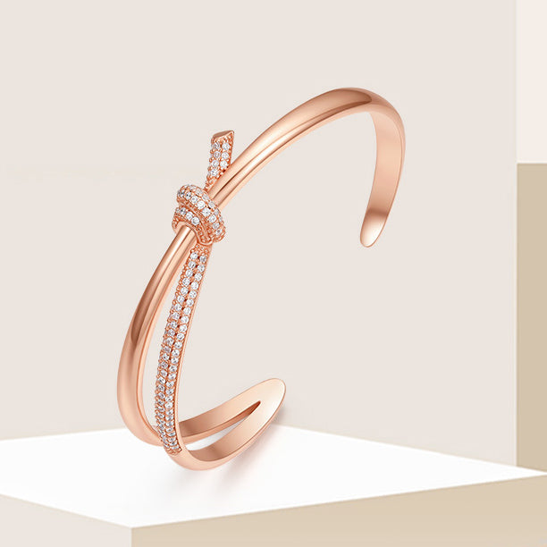 S925 Silver Rose Gold Time Knot Open Bangle