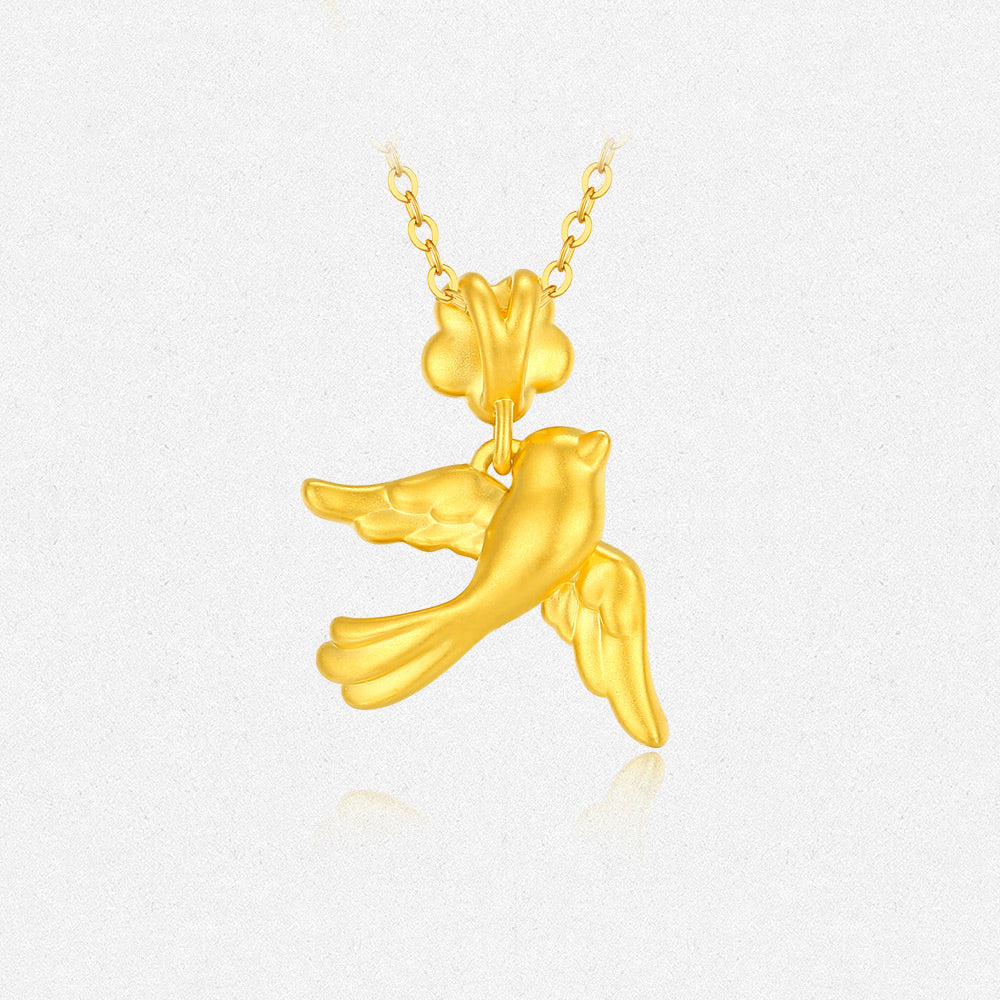 Twelve Gods of Flowers Series 24K Gold Magpie and Plum Blossom Fairly Pendant