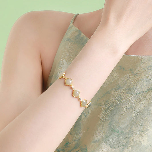 S925 Silver Gradient Color Hetian Jade Clover Bracelet