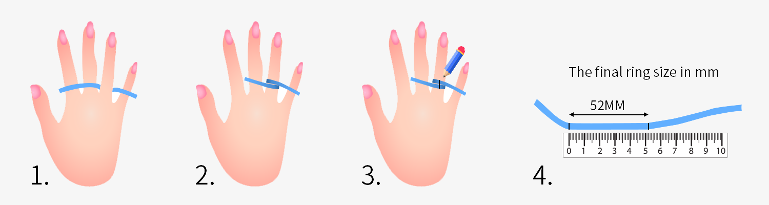 Measure the length of the palm circumference. Put your five fingers together and pinch them tightly, and use a soft ruler/rope to measure the circumference