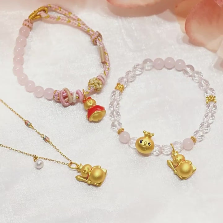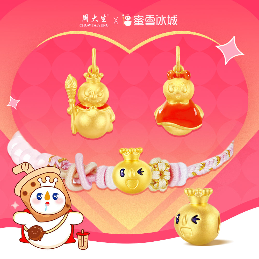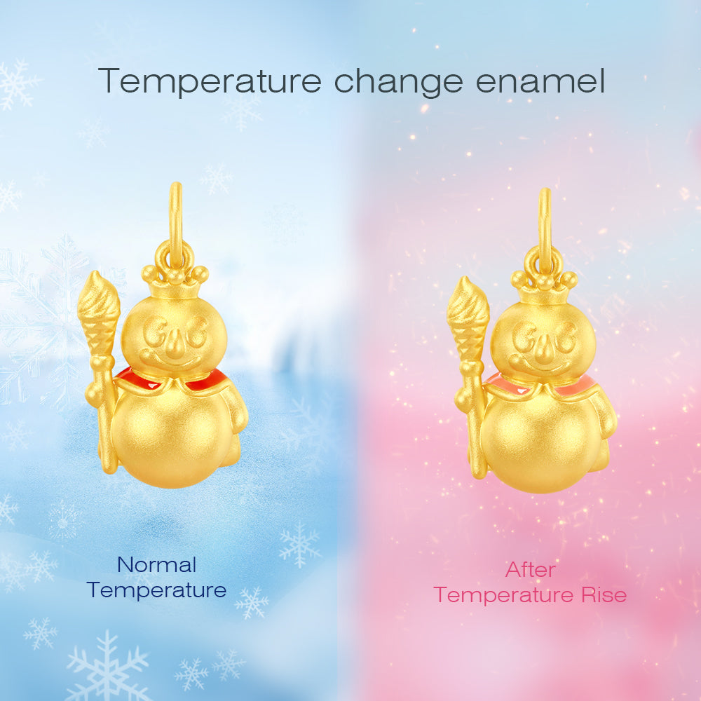⛄Add a playful touch to your style with the MIXUE Co-branded Series 24K Gold Temperature Color Change Enamel Snow King Pendant Charm. This collab with China's famous milk tea brand, MIXUE, features a cute and fun snow king design with Chow Tai Seng's signature temperature-changing enamel.