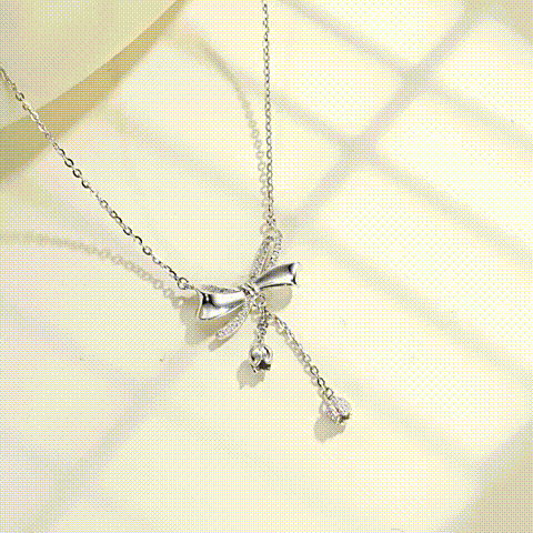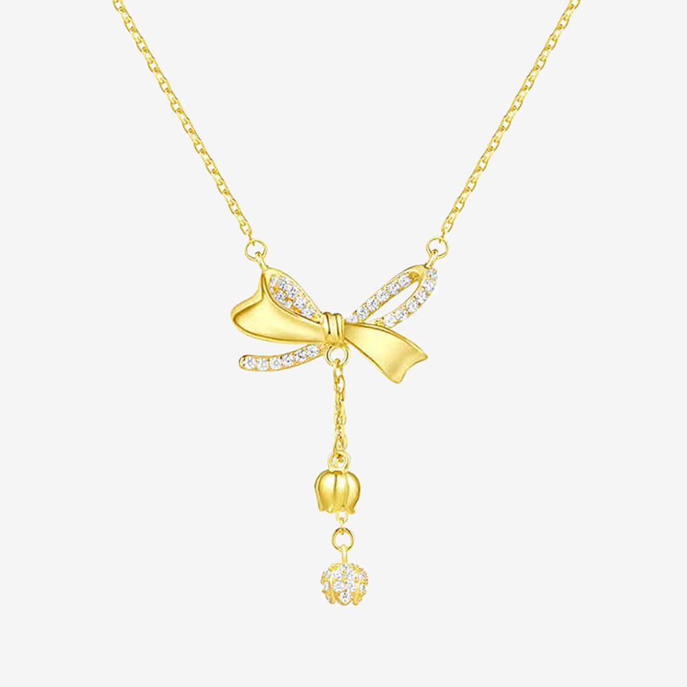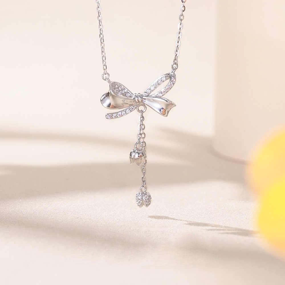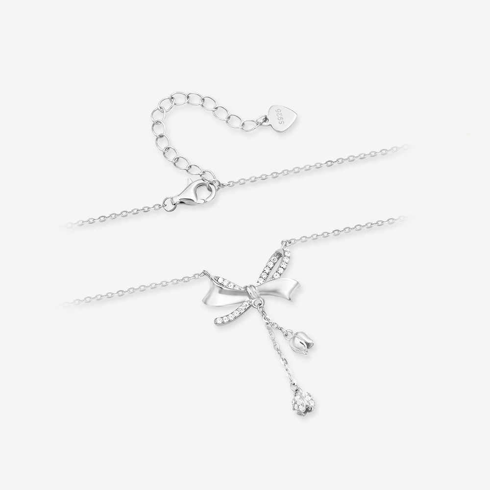 S925 Silver Bow Lily of the Valley Tassel Necklace