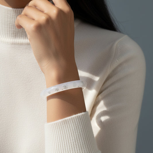 Butterfly Snowflake White Moonlight Chalcedony Bangle