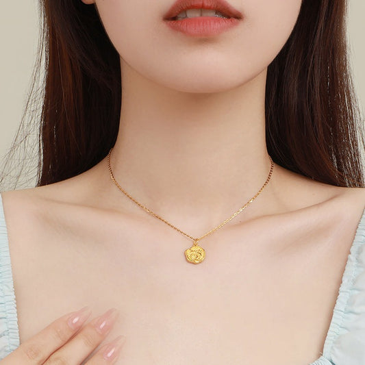 Monet Garden Series 24K Gold Secret Words Luminous Enamel Rose Heart Lock Pendant