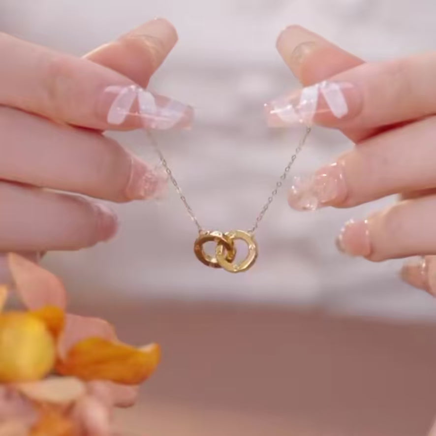 18K Gold Interlocking Double Circles Necklace