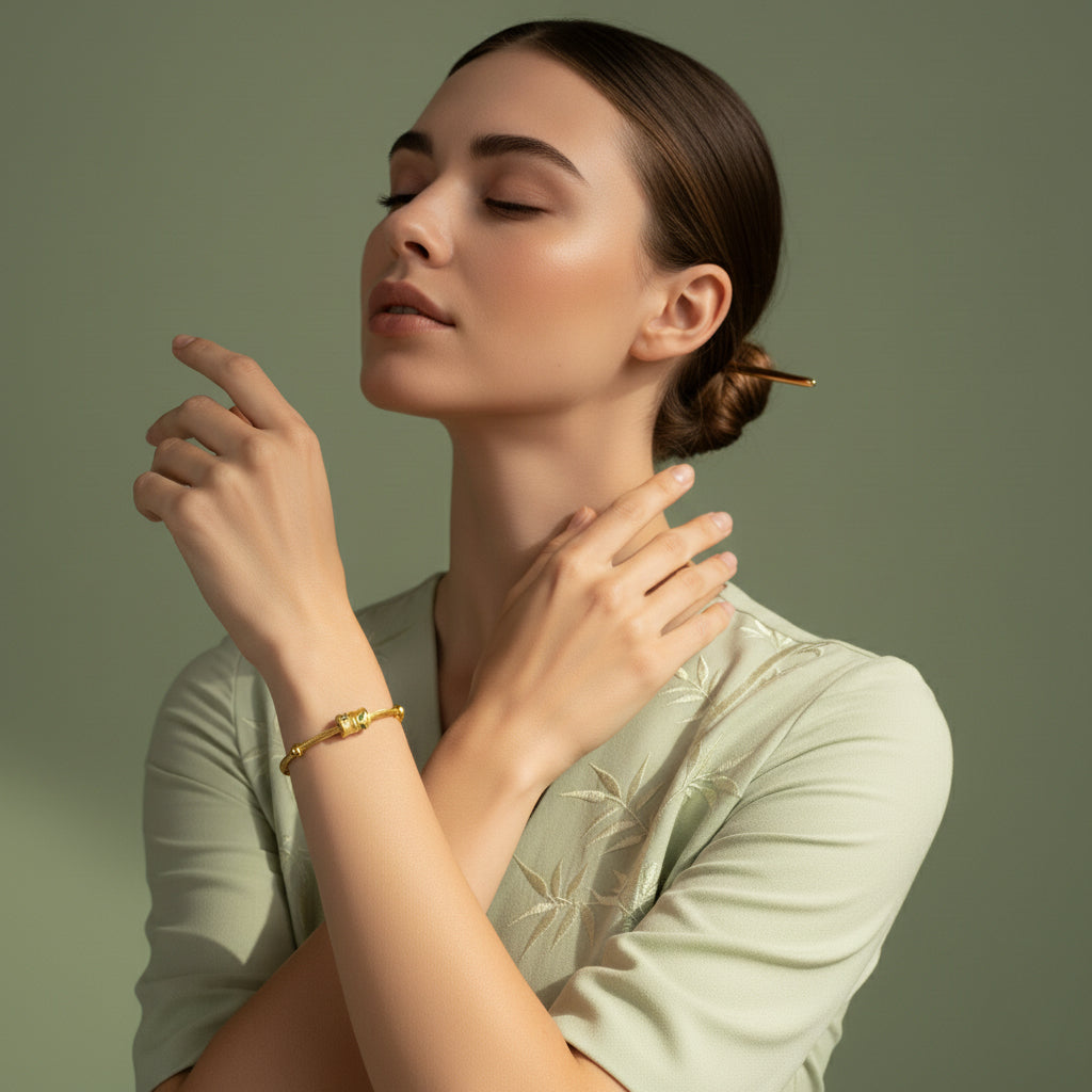Bamboo's evergreen nature symbolizes the eternal vitality of life, while its resilience suggests the wisdom to adapt to change. It perfectly blends the purity and integrity of bamboo with modern aesthetics, adding a touch of understated yet timeless elegance to the wearer.