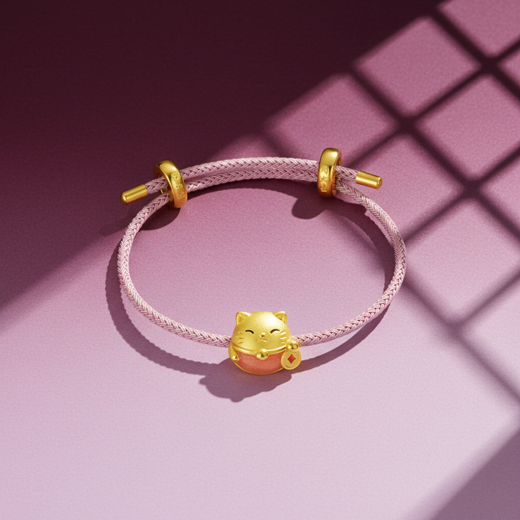 A gleaming golden lucky star is knocking on your door! This 24K gold enamel lucky cat pendant brings you good fortune with its adorable pose. Its right paw waves to attract wealth, while its left paw summons popularity—a perfect double chord of happiness. It's also an excellent gift for friends and family, allowing everyone to share in the lucky cat's blessings.