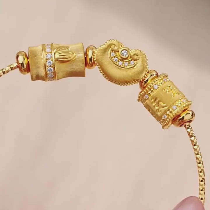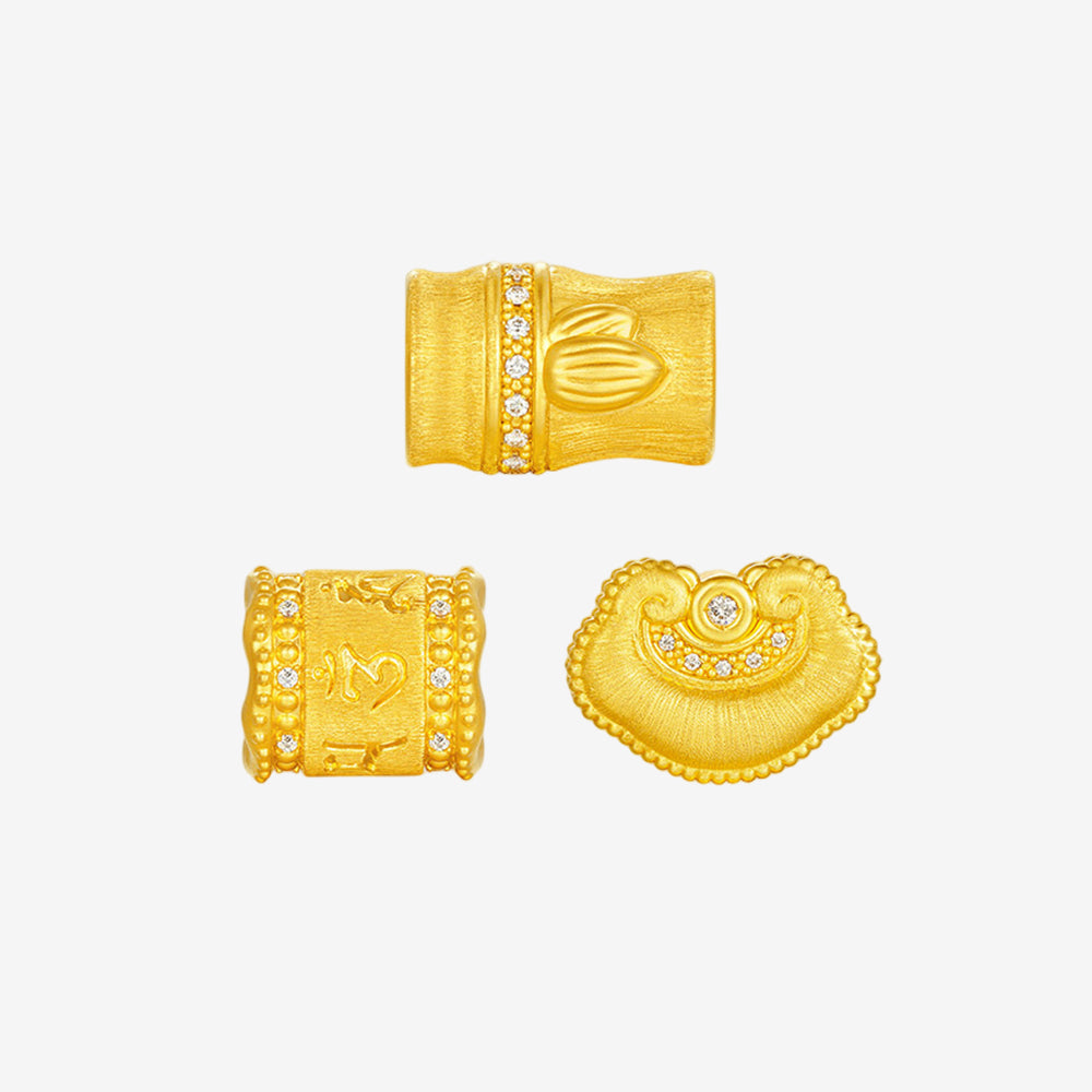 Chinese Cultural Relics Series 24K Gold Diamond Blessing Charm
