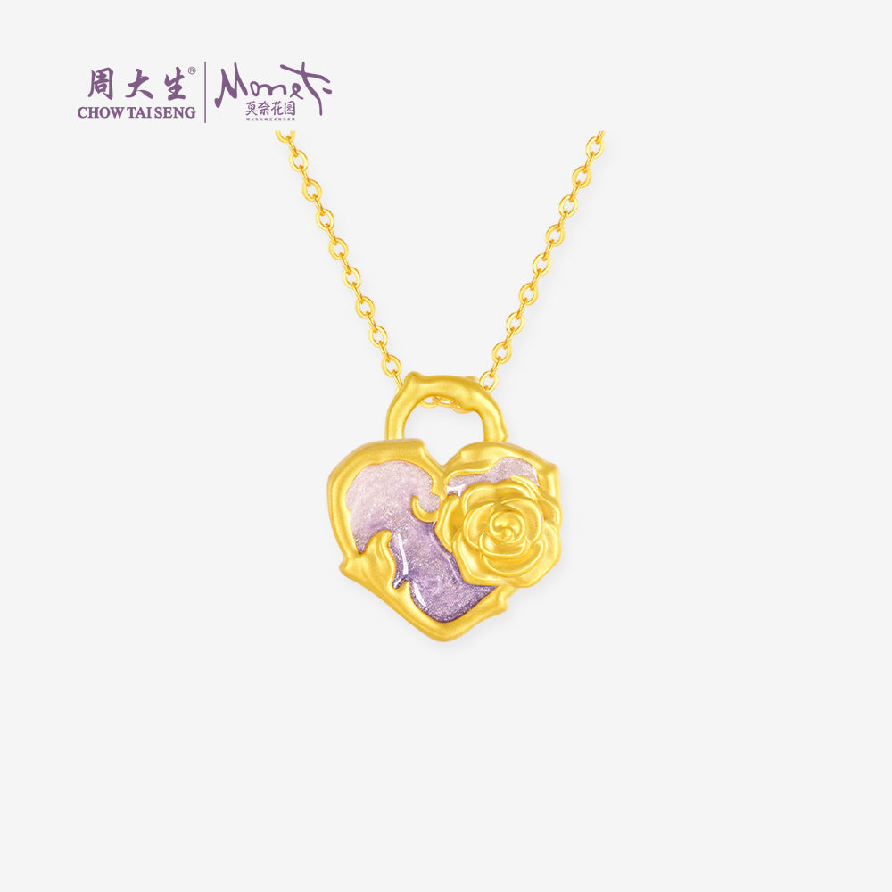 Monet Garden Series 24K Gold Secret Words Luminous Enamel Rose Heart Lock Pendant