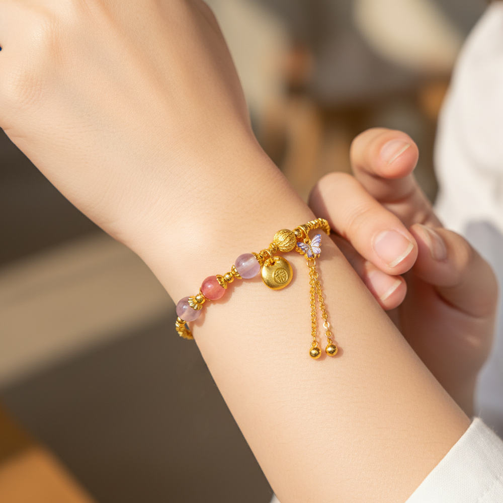 S925 Silver Agate Blessing Fu Bag Butterfly Bracelet
