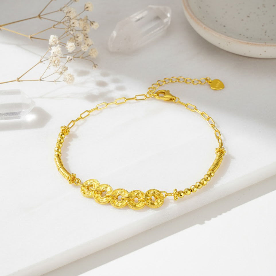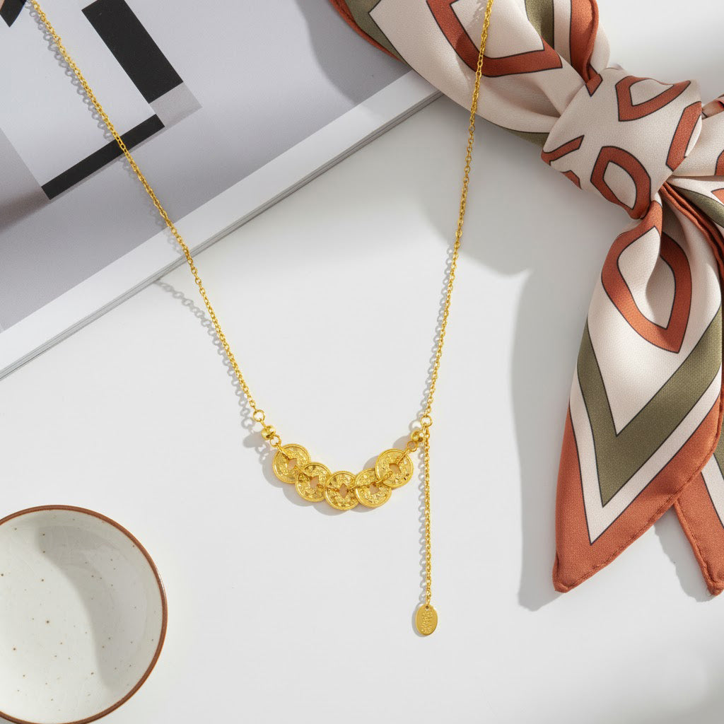 S925 Silver Five Emperors Coins Blessing Jewelry Set - Necklace & Bracelet