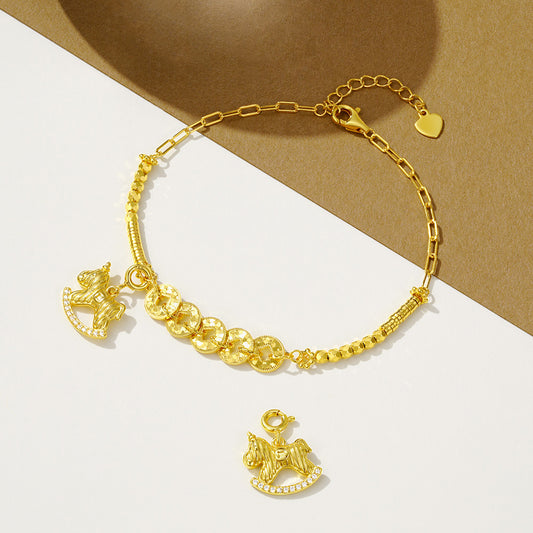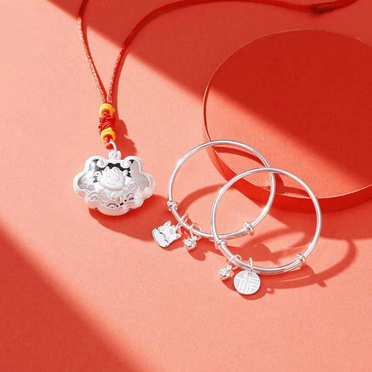 S990 Silver Zodiac Horse Baby Child Jewelry Set - Bracelet Necklace